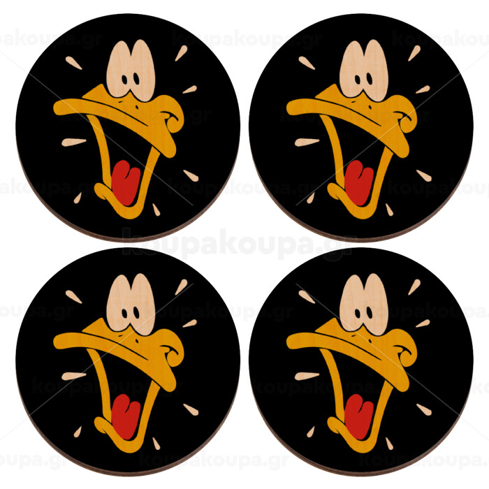 Daffy Duck, ΣΕΤ x4 Σουβέρ ξύλινα στρογγυλά plywood (9cm)