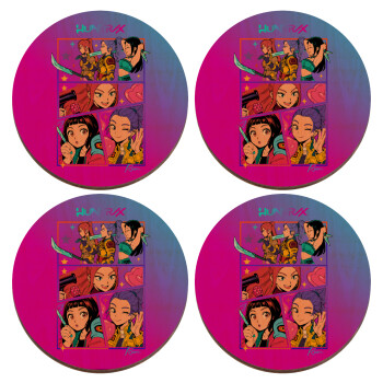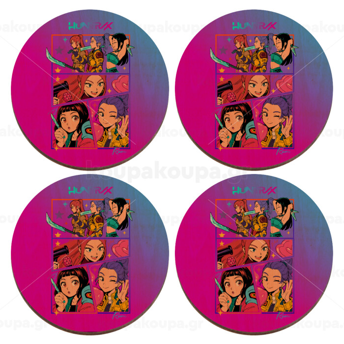 Huntrix Kpop Girls, ΣΕΤ x4 Σουβέρ ξύλινα στρογγυλά plywood (9cm)