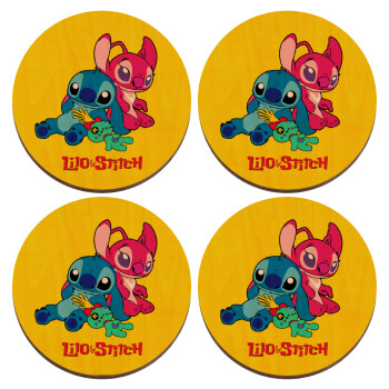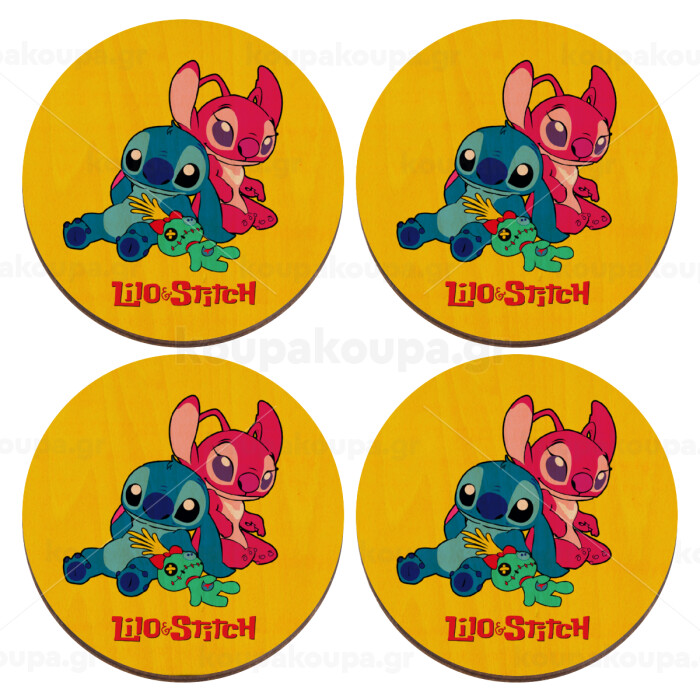 Lilo & Stitch, ΣΕΤ x4 Σουβέρ ξύλινα στρογγυλά plywood (9cm)