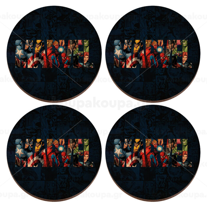 MARVEL characters, ΣΕΤ x4 Σουβέρ ξύλινα στρογγυλά plywood (9cm)