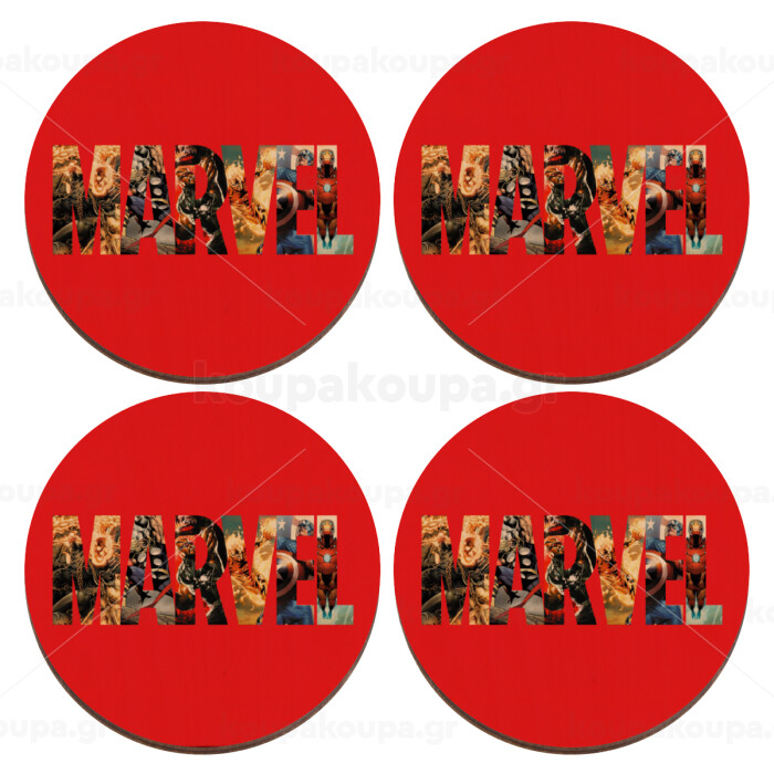 MARVEL Red, ΣΕΤ x4 Σουβέρ ξύλινα στρογγυλά plywood (9cm)