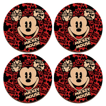 Mickey Mouse, ΣΕΤ x4 Σουβέρ ξύλινα στρογγυλά plywood (9cm)