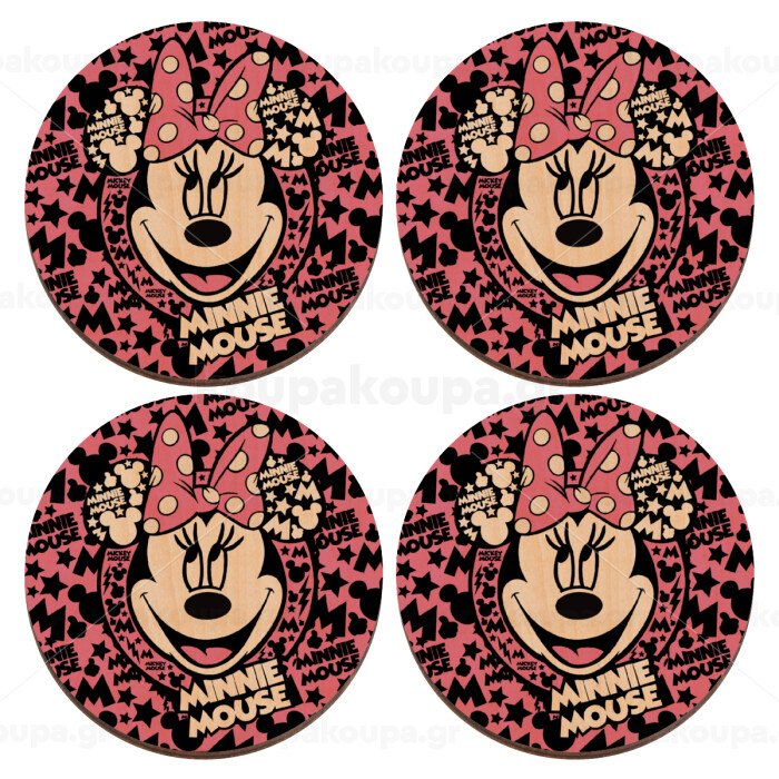 Minnie mouse, ΣΕΤ x4 Σουβέρ ξύλινα στρογγυλά plywood (9cm)