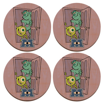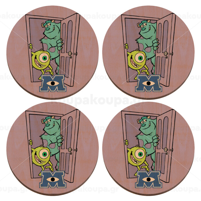 Monster inc, ΣΕΤ x4 Σουβέρ ξύλινα στρογγυλά plywood (9cm)