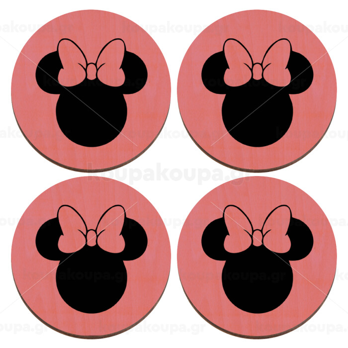mouse girl, ΣΕΤ x4 Σουβέρ ξύλινα στρογγυλά plywood (9cm)