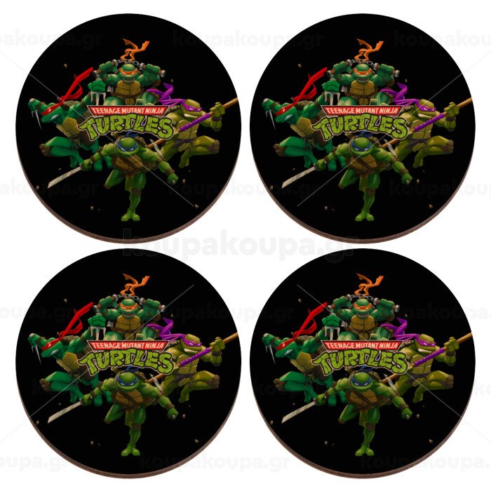 Ninja turtles, ΣΕΤ x4 Σουβέρ ξύλινα στρογγυλά plywood (9cm)
