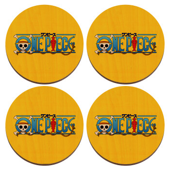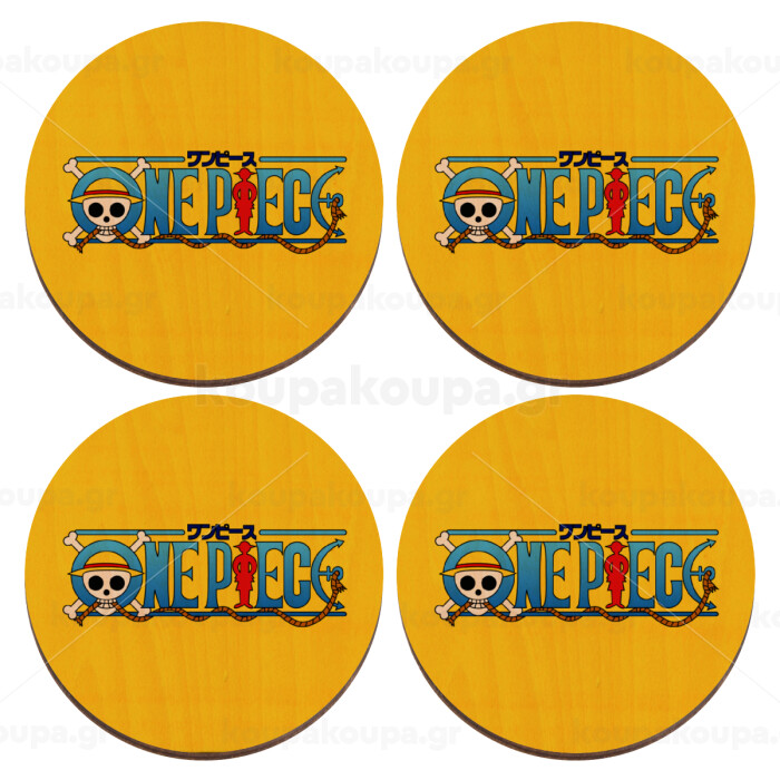 Onepiece logo, ΣΕΤ x4 Σουβέρ ξύλινα στρογγυλά plywood (9cm)