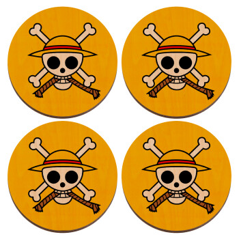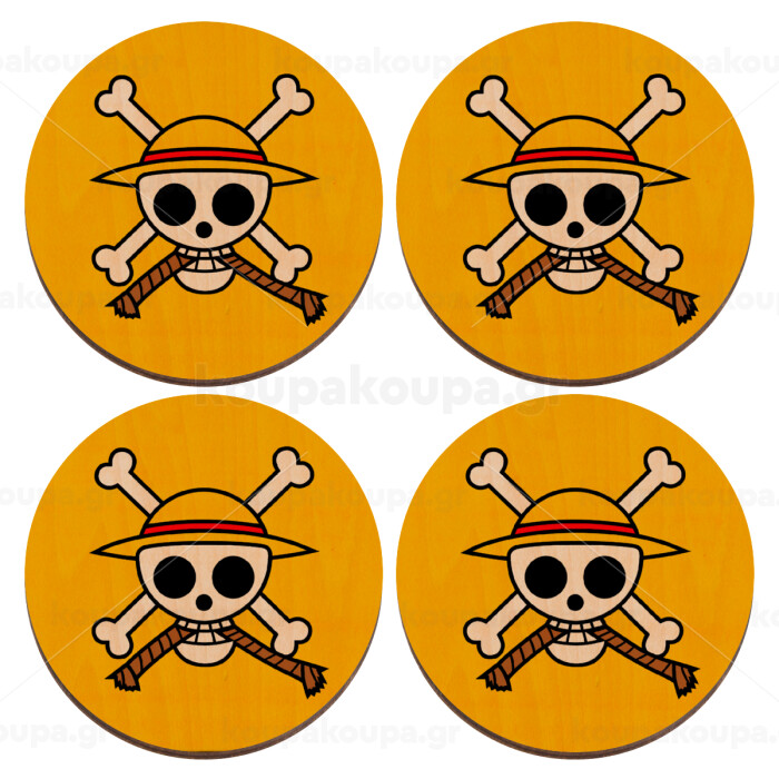 Onepiece skull, ΣΕΤ x4 Σουβέρ ξύλινα στρογγυλά plywood (9cm)