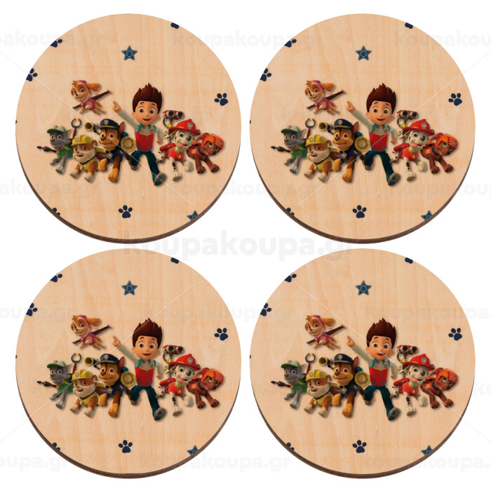 paw patrol, ΣΕΤ x4 Σουβέρ ξύλινα στρογγυλά plywood (9cm)
