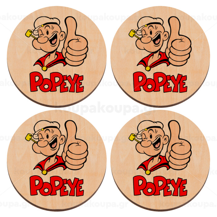 Popeye the sailor man, ΣΕΤ x4 Σουβέρ ξύλινα στρογγυλά plywood (9cm)