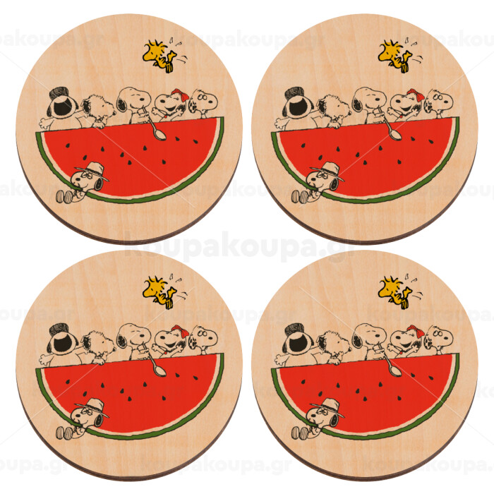 Snoopy summer, ΣΕΤ x4 Σουβέρ ξύλινα στρογγυλά plywood (9cm)