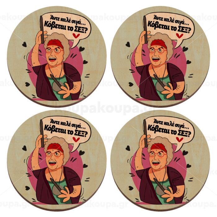 Αντε καλέ, σιγά, κόβεται το σέξ ;, ΣΕΤ x4 Σουβέρ ξύλινα στρογγυλά plywood (9cm)