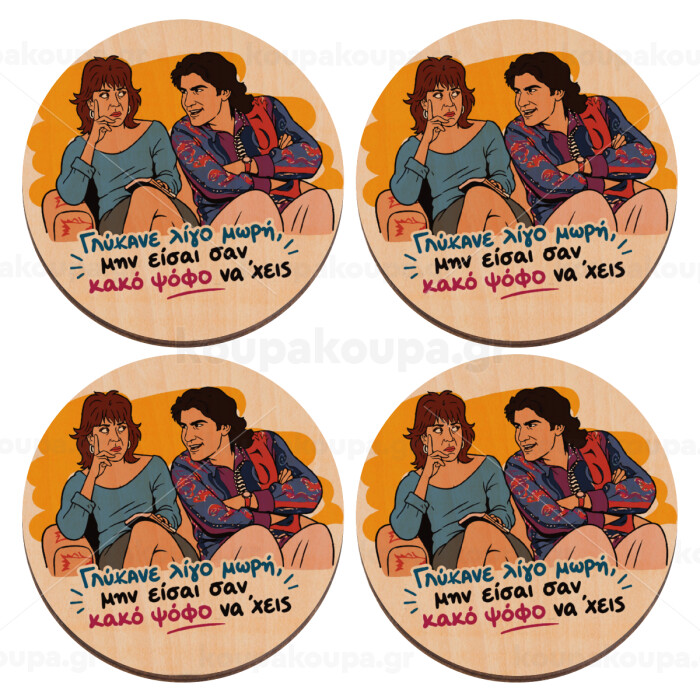 Γλύκανε λίγο, ΣΕΤ x4 Σουβέρ ξύλινα στρογγυλά plywood (9cm)