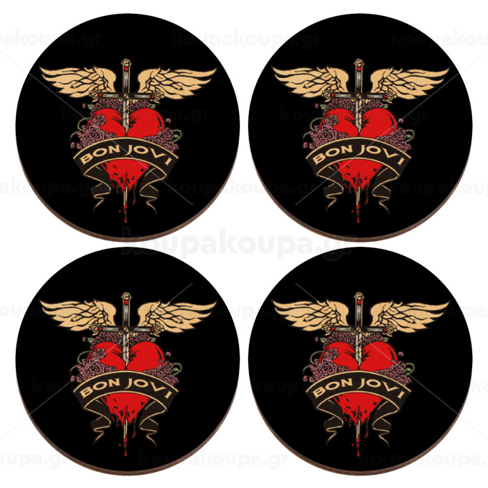 Bon Jovi, ΣΕΤ x4 Σουβέρ ξύλινα στρογγυλά plywood (9cm)