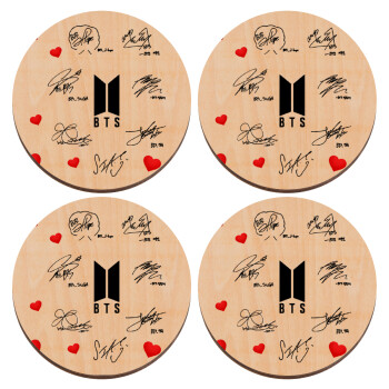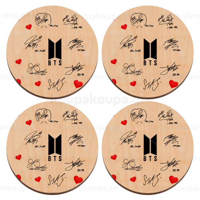 BTS signatures, ΣΕΤ x4 Σουβέρ ξύλινα στρογγυλά plywood (9cm)