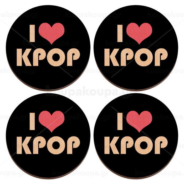 I Love KPOP, ΣΕΤ x4 Σουβέρ ξύλινα στρογγυλά plywood (9cm)
