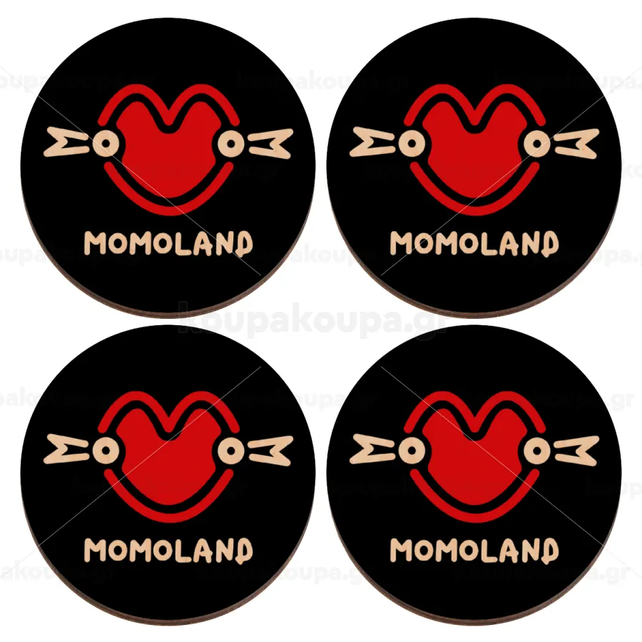 Momoland, ΣΕΤ x4 Σουβέρ ξύλινα στρογγυλά plywood (9cm)