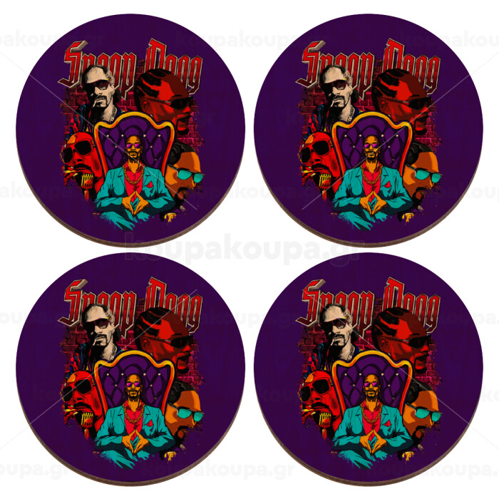 Snoop Dogg, ΣΕΤ x4 Σουβέρ ξύλινα στρογγυλά plywood (9cm)