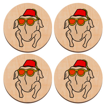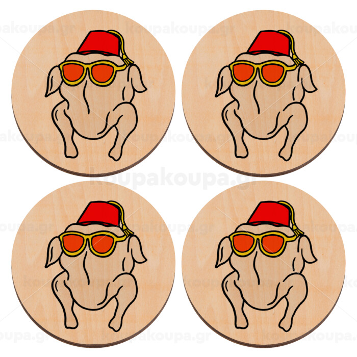 Friends turkey, ΣΕΤ x4 Σουβέρ ξύλινα στρογγυλά plywood (9cm)