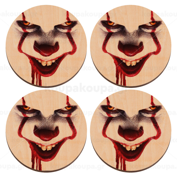 IT Pennywise, ΣΕΤ x4 Σουβέρ ξύλινα στρογγυλά plywood (9cm)