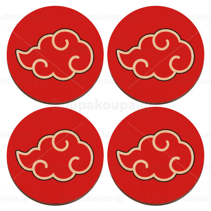 Naruto Akatsuki Cloud, ΣΕΤ x4 Σουβέρ ξύλινα στρογγυλά plywood (9cm)