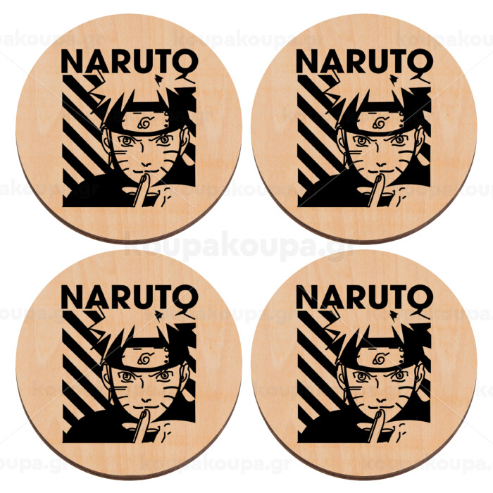 Naruto uzumaki, ΣΕΤ x4 Σουβέρ ξύλινα στρογγυλά plywood (9cm)