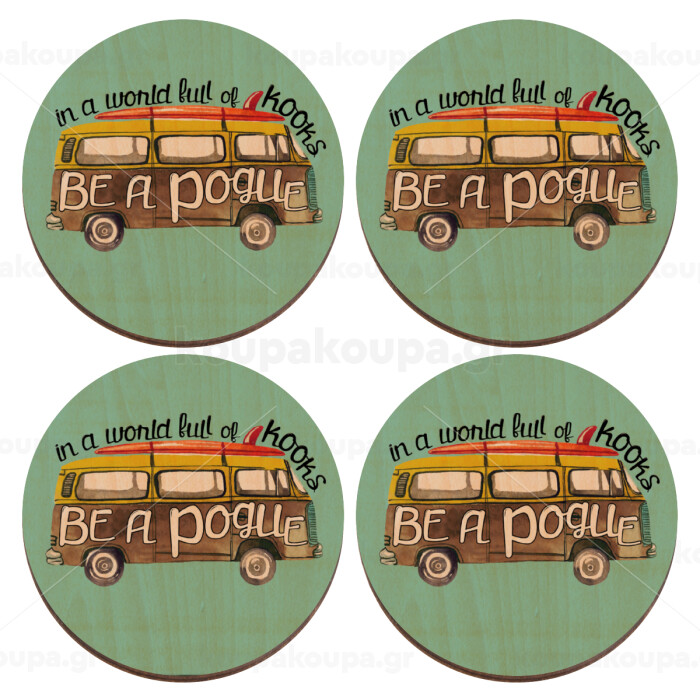 Outerbanks Pogue Life, ΣΕΤ x4 Σουβέρ ξύλινα στρογγυλά plywood (9cm)