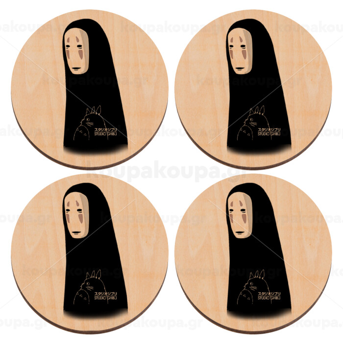 Spirited Away No Face, ΣΕΤ x4 Σουβέρ ξύλινα στρογγυλά plywood (9cm)