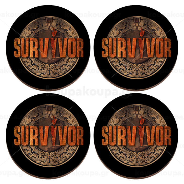 Survivor, ΣΕΤ x4 Σουβέρ ξύλινα στρογγυλά plywood (9cm)