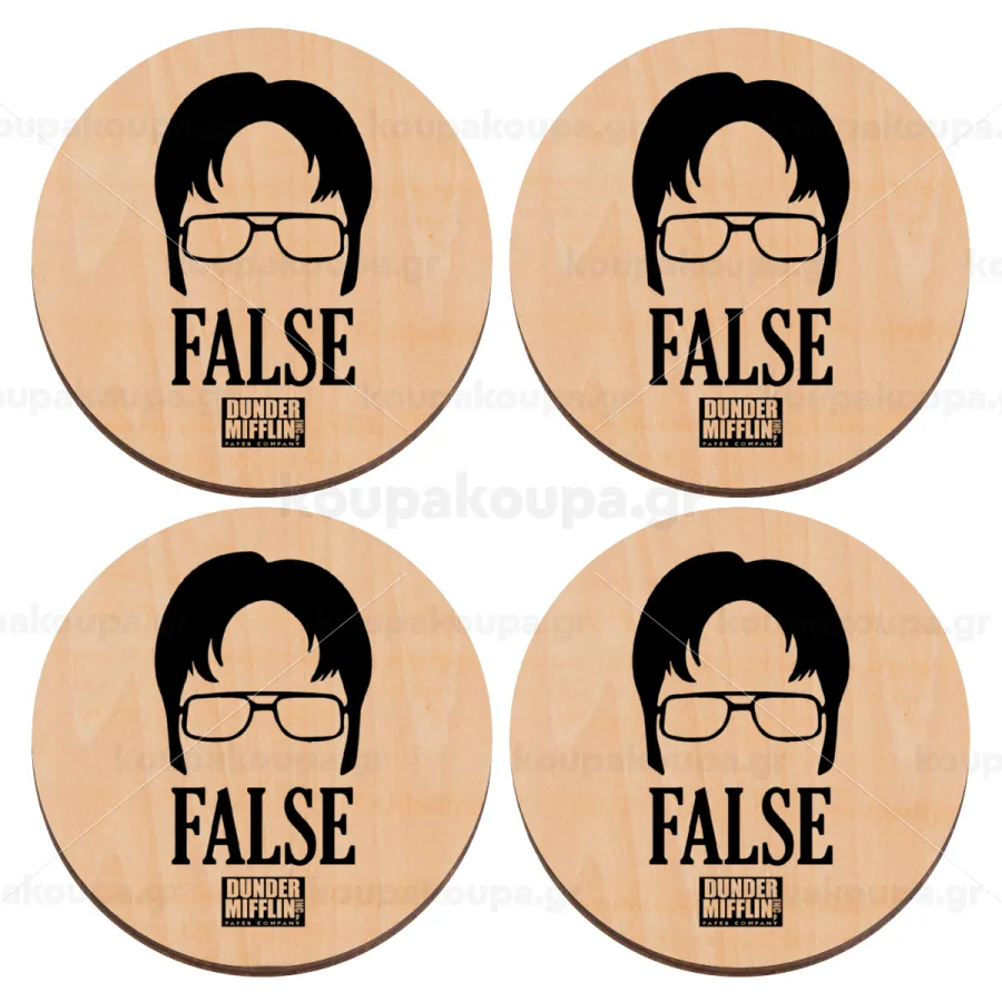 The office Dwight false, ΣΕΤ x4 Σουβέρ ξύλινα στρογγυλά plywood (9cm)