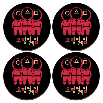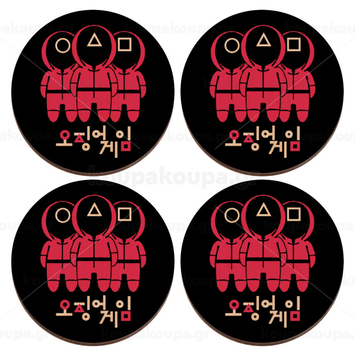 The squid game, ΣΕΤ x4 Σουβέρ ξύλινα στρογγυλά plywood (9cm)