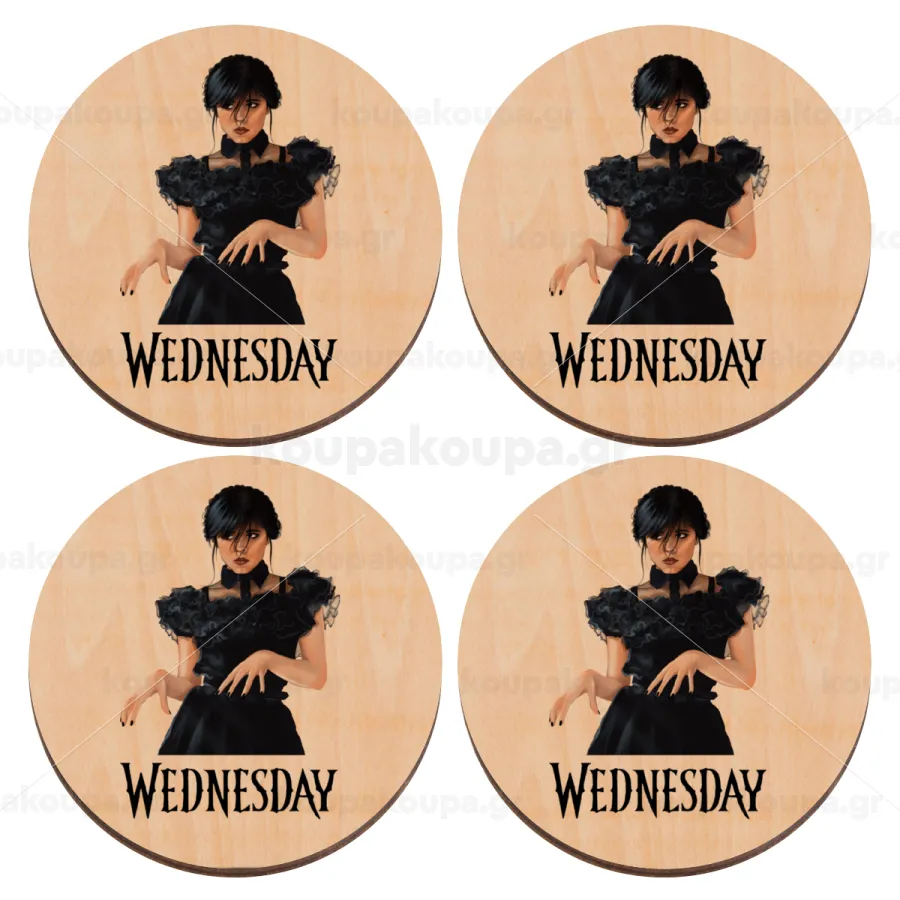 Wednesday Adams, dance with hands, ΣΕΤ x4 Σουβέρ ξύλινα στρογγυλά plywood (9cm)