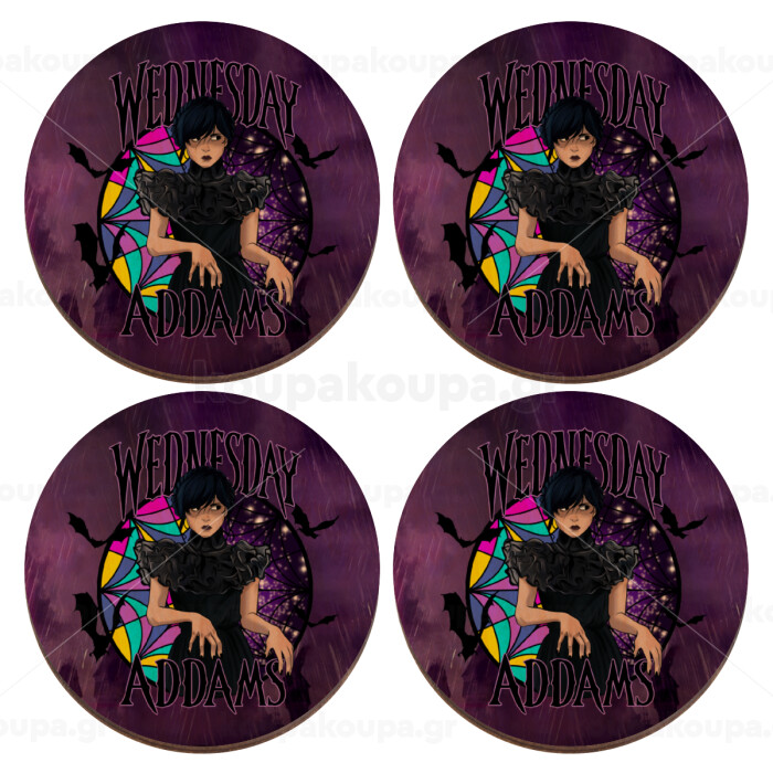 Wednesday Jenna Ortega, ΣΕΤ x4 Σουβέρ ξύλινα στρογγυλά plywood (9cm)
