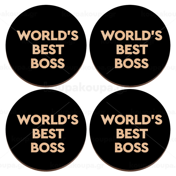 World's best boss, ΣΕΤ x4 Σουβέρ ξύλινα στρογγυλά plywood (9cm)