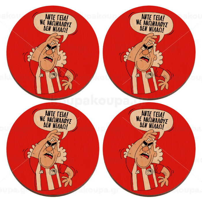 Τάκης, Άντε γεια, με ανώμαλους δεν μιλάω!, ΣΕΤ x4 Σουβέρ ξύλινα στρογγυλά plywood (9cm)