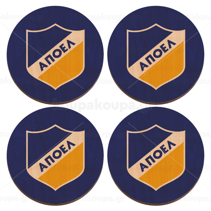 FC ΑΠΟΕΛ Λευκωσίας, ΣΕΤ x4 Σουβέρ ξύλινα στρογγυλά plywood (9cm)