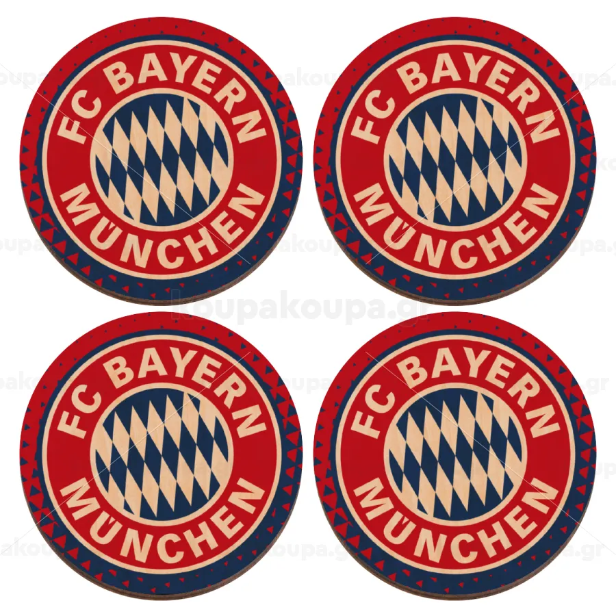FC Bayern Munich, ΣΕΤ x4 Σουβέρ ξύλινα στρογγυλά plywood (9cm)