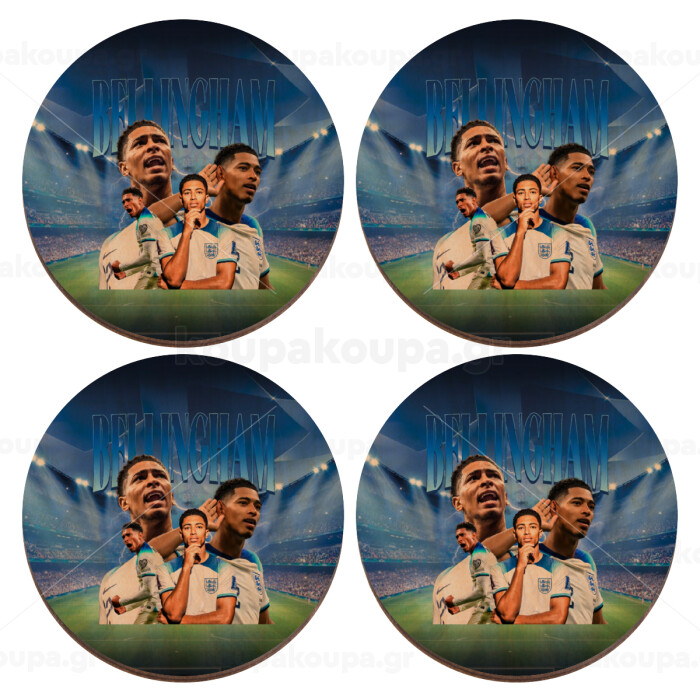 Jude Bellingham, ΣΕΤ x4 Σουβέρ ξύλινα στρογγυλά plywood (9cm)