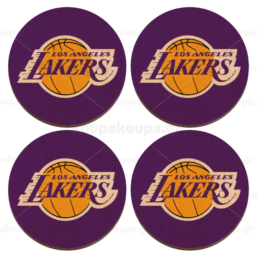 Lakers, ΣΕΤ x4 Σουβέρ ξύλινα στρογγυλά plywood (9cm)
