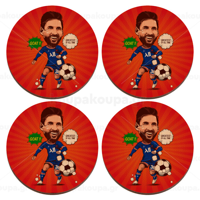 Lionel Messi drawing, ΣΕΤ x4 Σουβέρ ξύλινα στρογγυλά plywood (9cm)