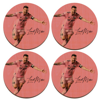 Lionel Messi inter miami jersey, ΣΕΤ x4 Σουβέρ ξύλινα στρογγυλά plywood (9cm)