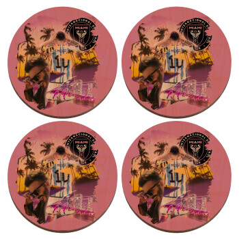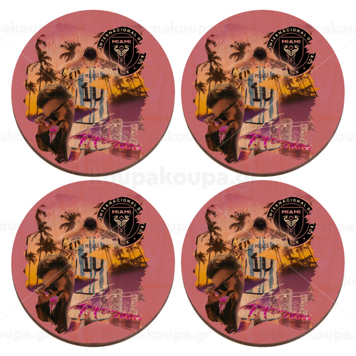 Lionel Messi Miami, ΣΕΤ x4 Σουβέρ ξύλινα στρογγυλά plywood (9cm)