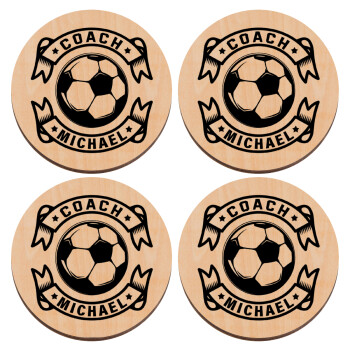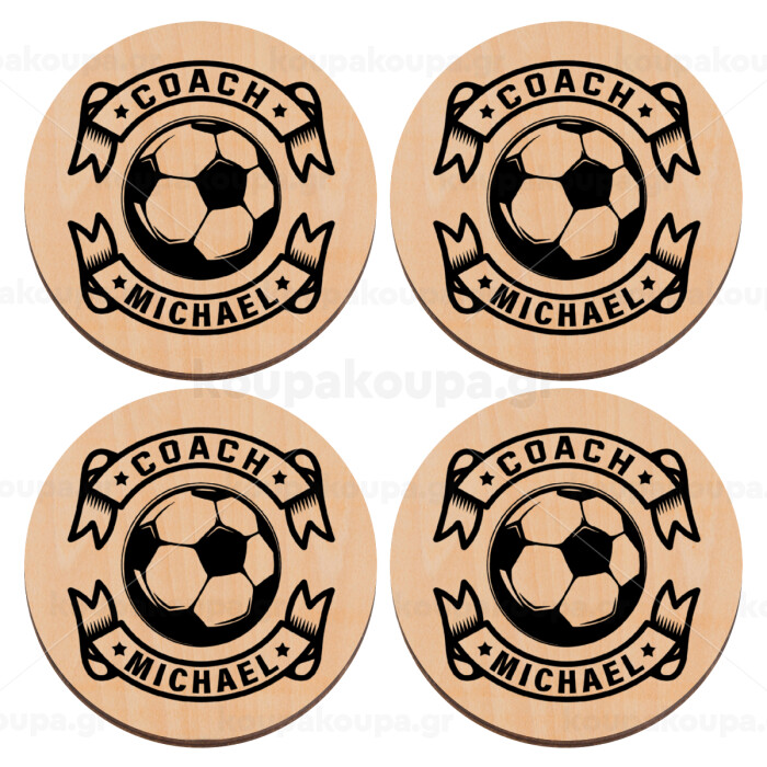 Soccer coach, ΣΕΤ x4 Σουβέρ ξύλινα στρογγυλά plywood (9cm)