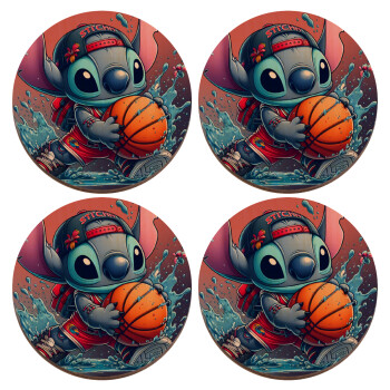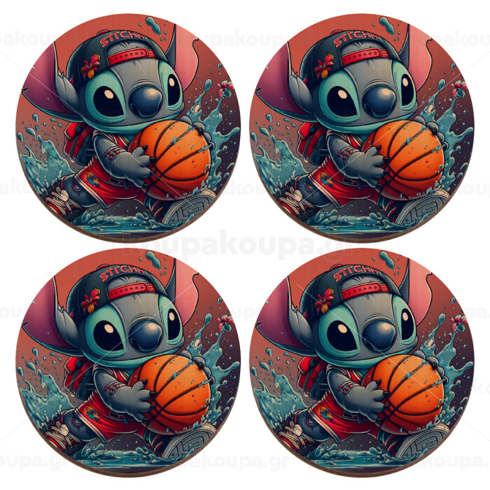 Stitch Basketball, ΣΕΤ x4 Σουβέρ ξύλινα στρογγυλά plywood (9cm)