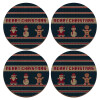 Merry christmas knitted, ΣΕΤ x4 Σουβέρ ξύλινα στρογγυλά plywood (9cm)