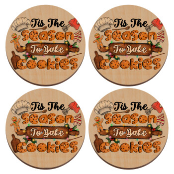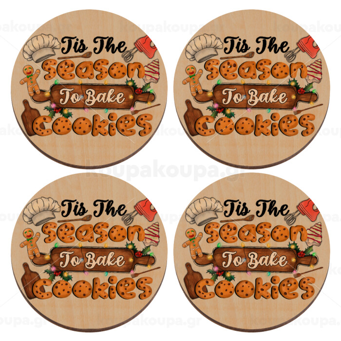 Tis The Season To Bake Cookies, ΣΕΤ x4 Σουβέρ ξύλινα στρογγυλά plywood (9cm)