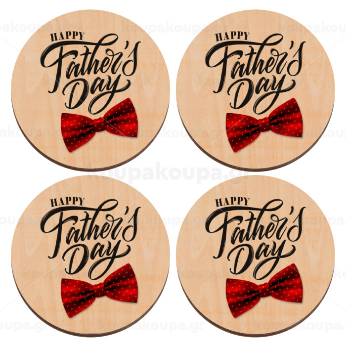 Happy father's Days, ΣΕΤ x4 Σουβέρ ξύλινα στρογγυλά plywood (9cm)