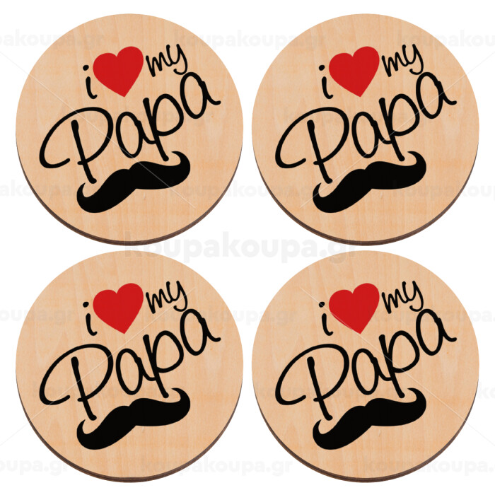 I Love my papa, ΣΕΤ x4 Σουβέρ ξύλινα στρογγυλά plywood (9cm)