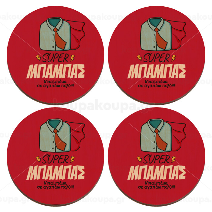 SUPER ΜΠΑΜΠΑΣ, ΣΕΤ x4 Σουβέρ ξύλινα στρογγυλά plywood (9cm)