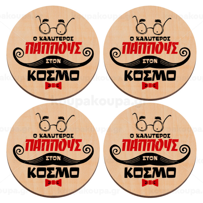 Ο καλύτερος παππούς του κόσμου!, ΣΕΤ x4 Σουβέρ ξύλινα στρογγυλά plywood (9cm)